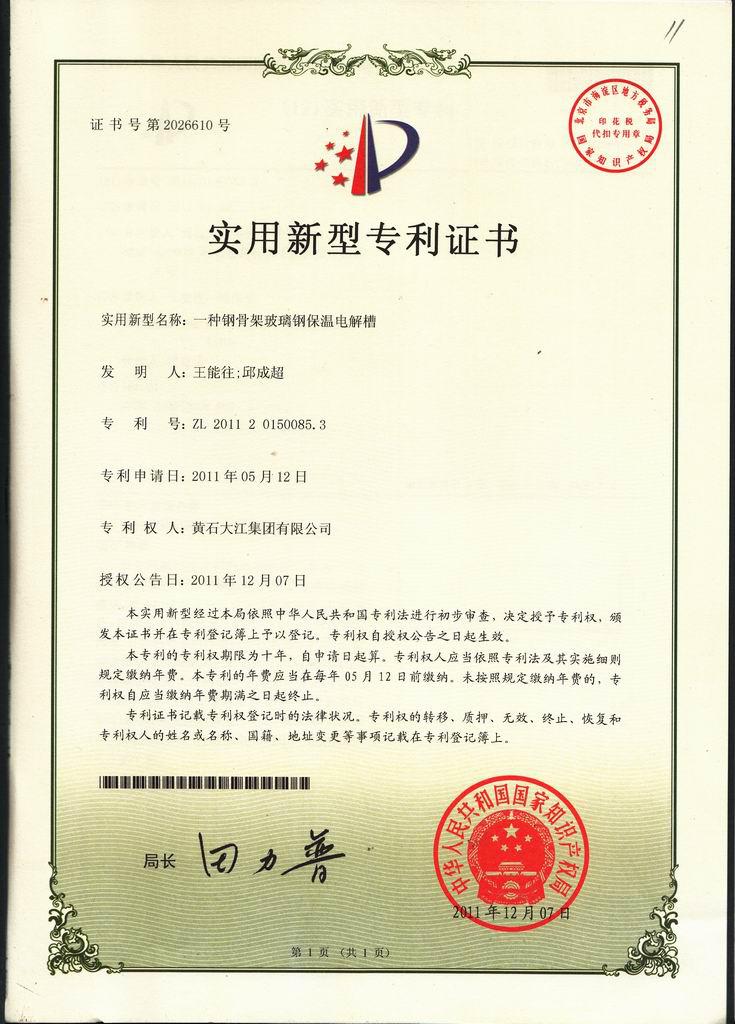 一、 實用新型電解槽(本公司專利產(chǎn)品ZL201120150085.3)